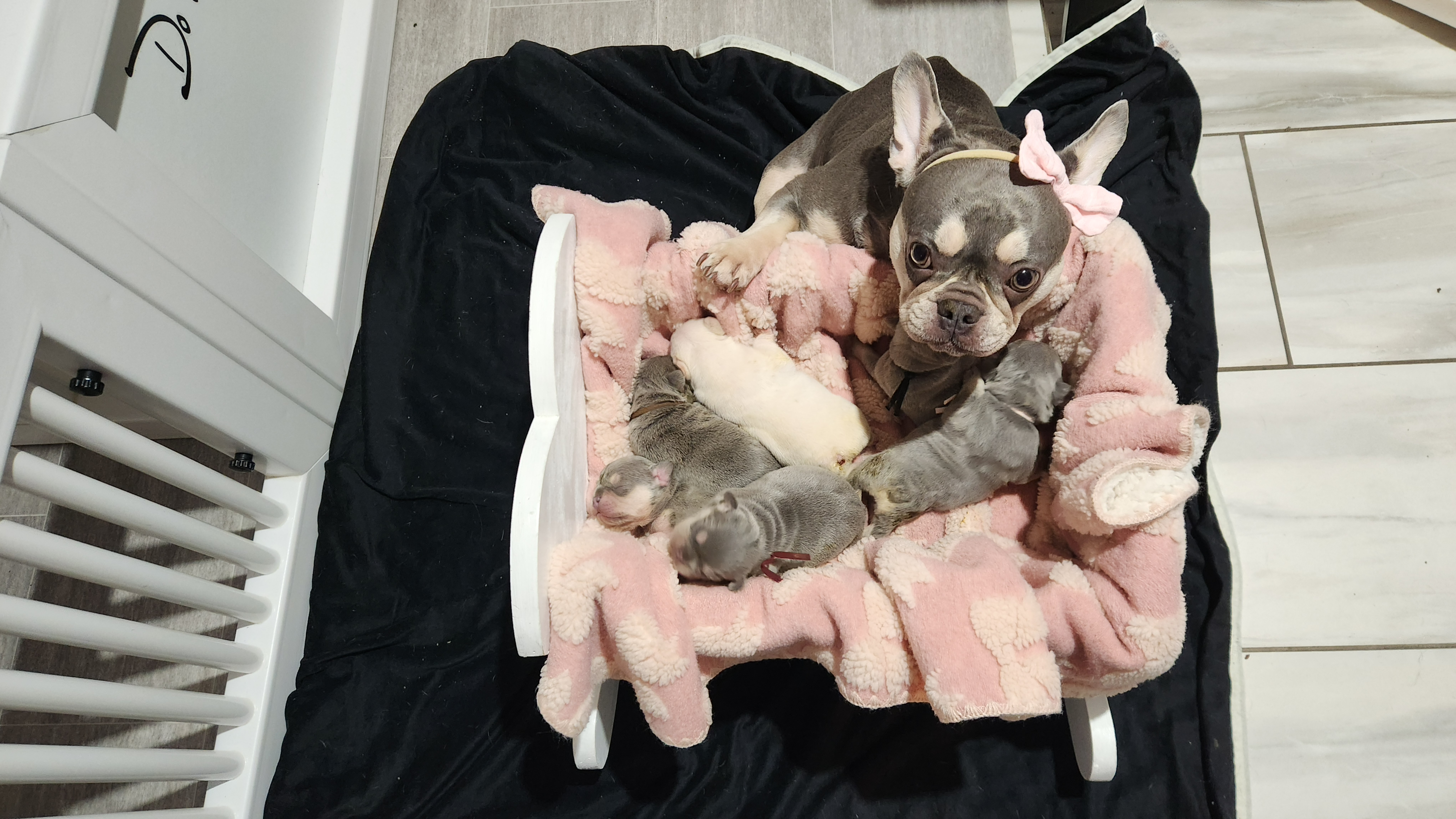 Dita and Rome had a litter of 5 born Nov 30th and are pictured above – 4 girls and 1 boy. 3 of the girls are blue fawn and the 4th girl is blue. The boy is a black brindle. The girls are 3500 each and the boy is 3500. Detailed pics of each pup will be posted once the pups reach 4 weeks of age.